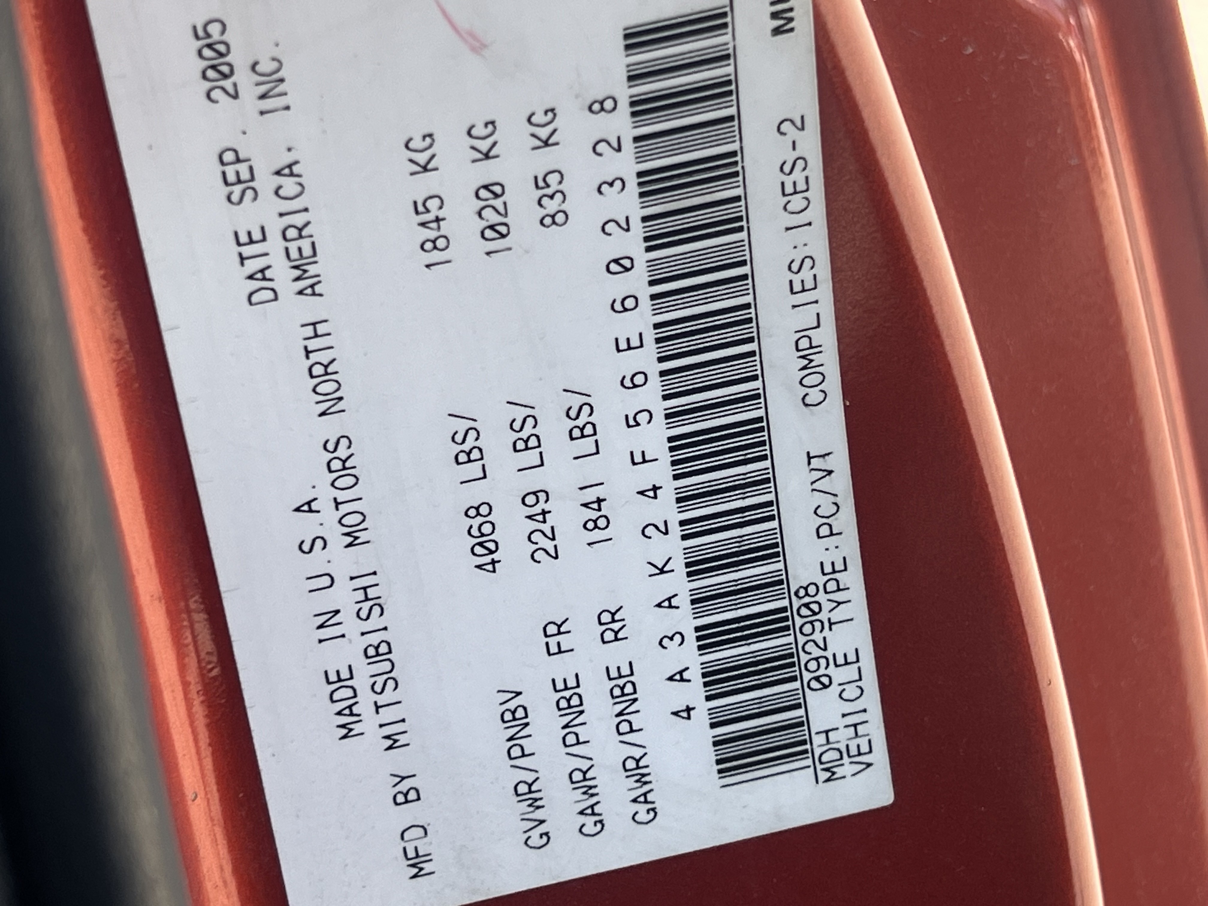 2006 Mitsubishi Eclipse 3dr Cpe GS 2.4L Manual